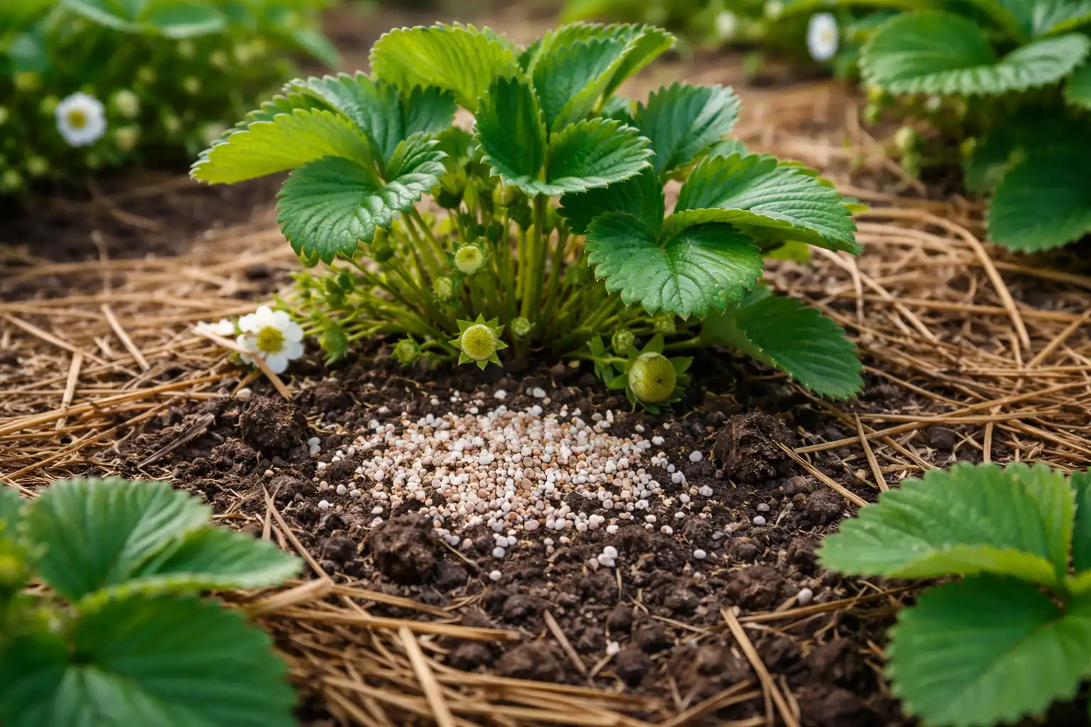 Vårsådder kräver rätt balans mellan fukt och näringsämnen. Om du överdriver med kväve får du en frodig djungel av blad men knappast några bär. Det är viktigt att växla växten från grön massa till blomstjälkbildning i tid.