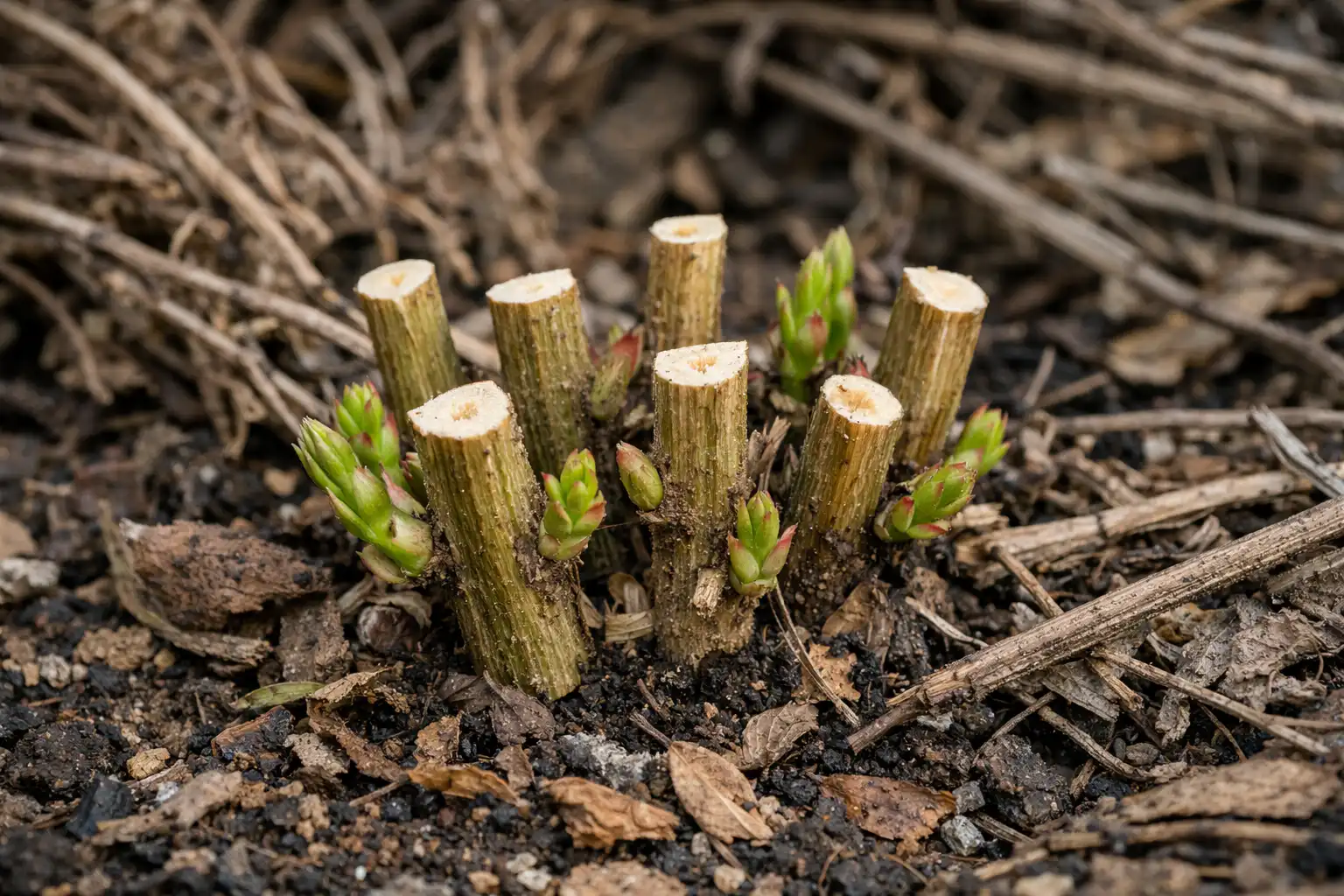 Lämna vanligtvis 15 till 30 centimeter över marknivån, med fokus på närvaron av två par friska knoppar.