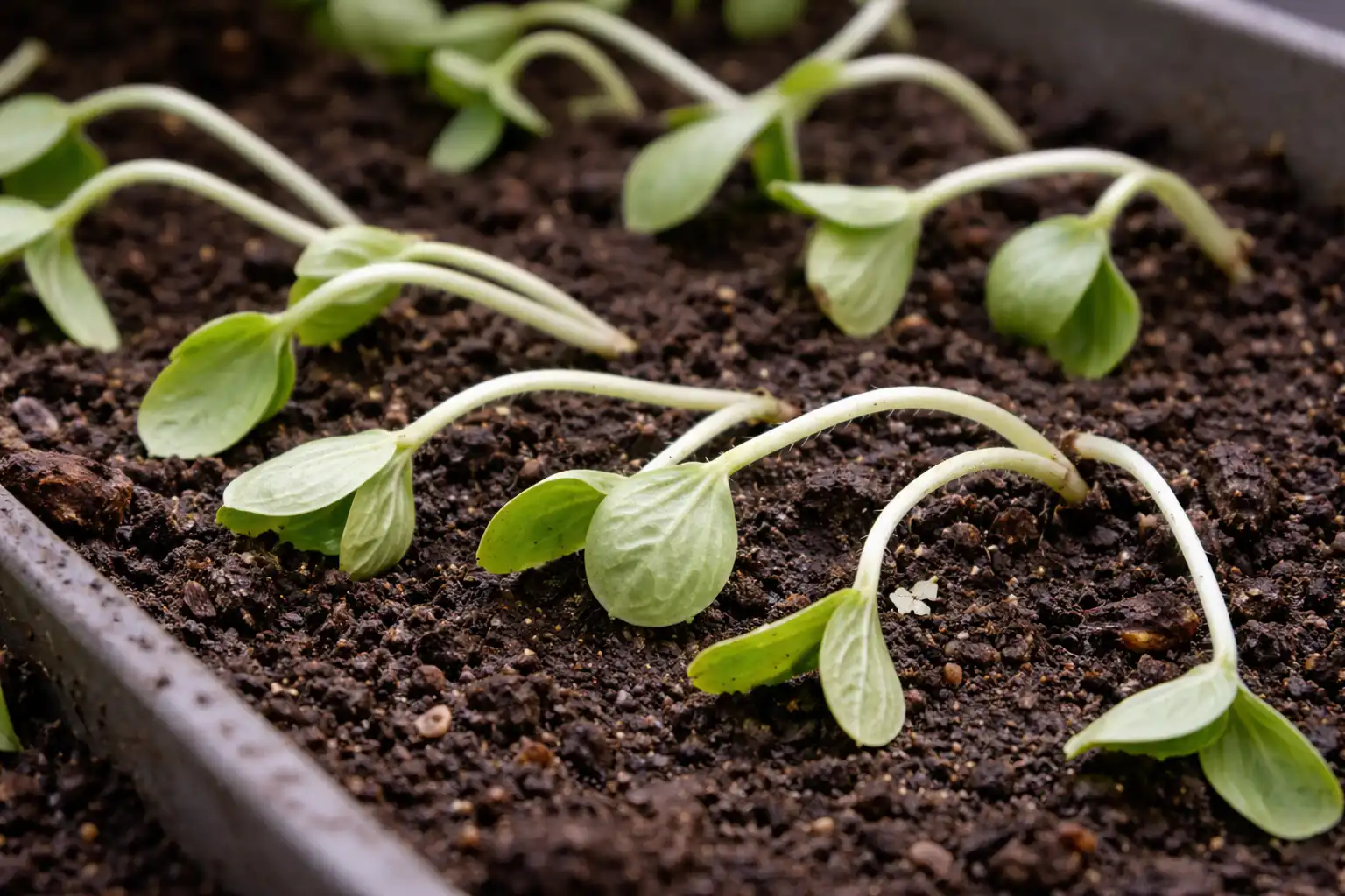 Den främsta dödsorsaken är etiolering. I mörkret producerar växten ett överskott av tillväxthormonet auxin, vilket gör att cellerna sträcker sig i längd men inte stärker sina väggar. Resultatet blir ett ihåligt ”rör” som inte ens kan bära sin egen vikt.