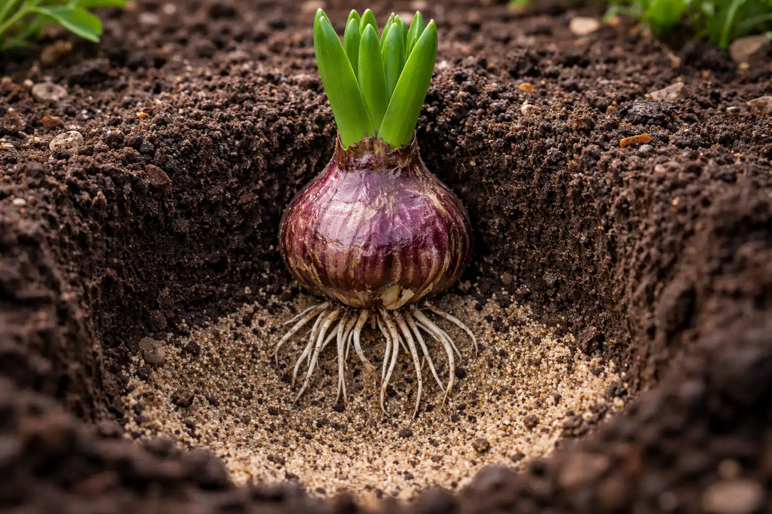 – Använd specialiserade lökblandningar med hög kaliumhalt. – Undvik färsk gödsel, eftersom det orsakar omedelbar ruttning av botten. – Vattningen ska vara måttlig, strikt under roten och undvik att vattna i mitten av bladrosetten.