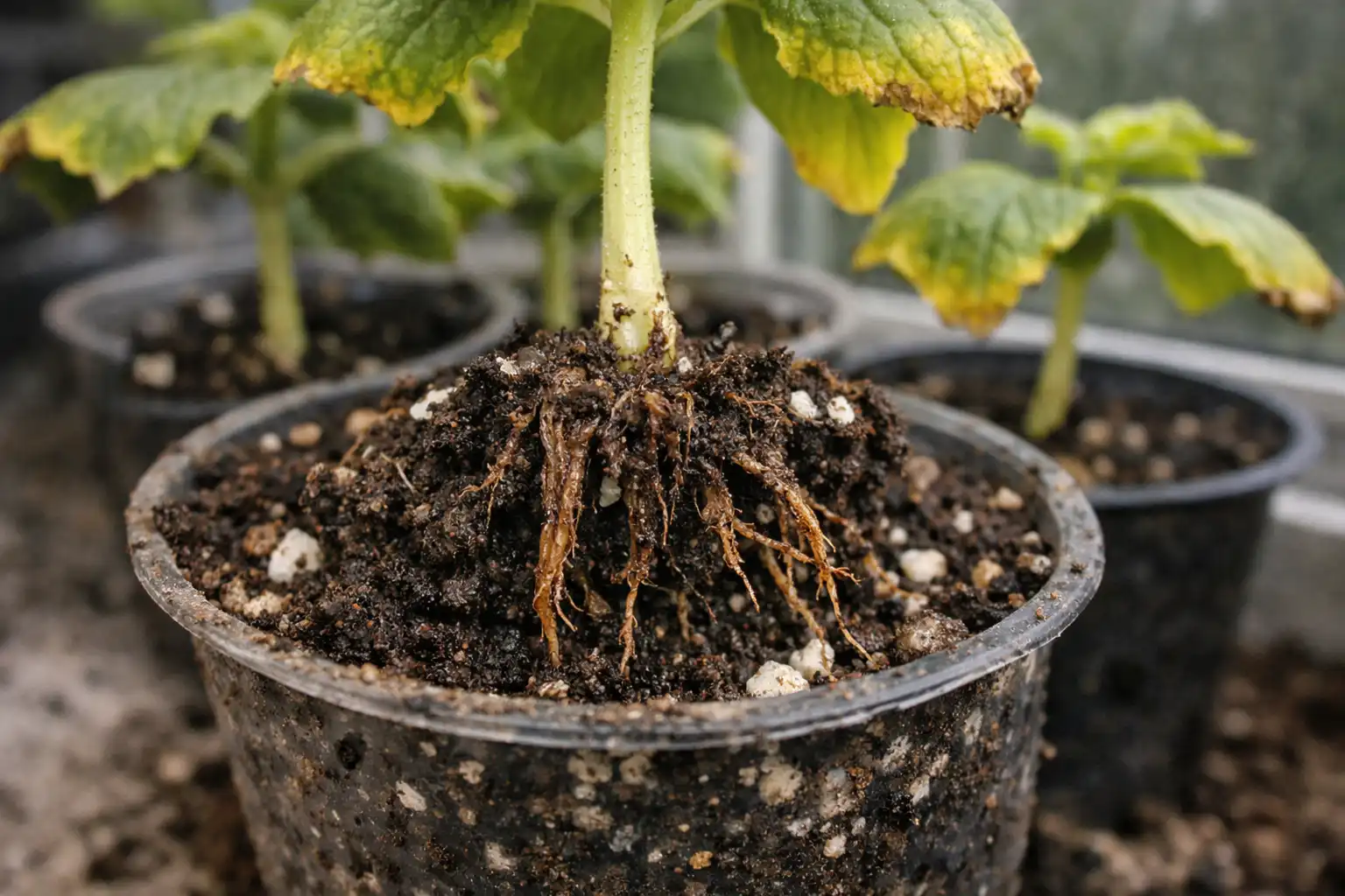 Unga gurkaplantor är extremt känsliga för saltkoncentration i substratet. Vanlig träaska eller kaliumklorid kan vara giftigt för det omogna rotsystemet.