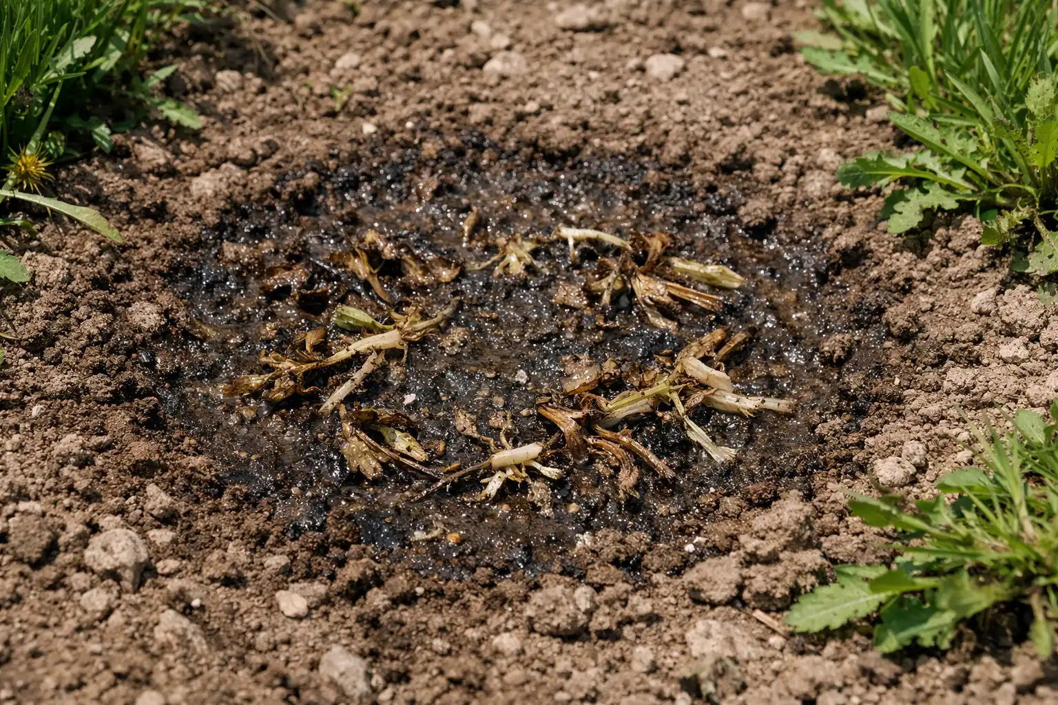 Proceduren utförs bäst på den soliga eftermiddagen, när solen torkar den skadade grönskan maximalt.