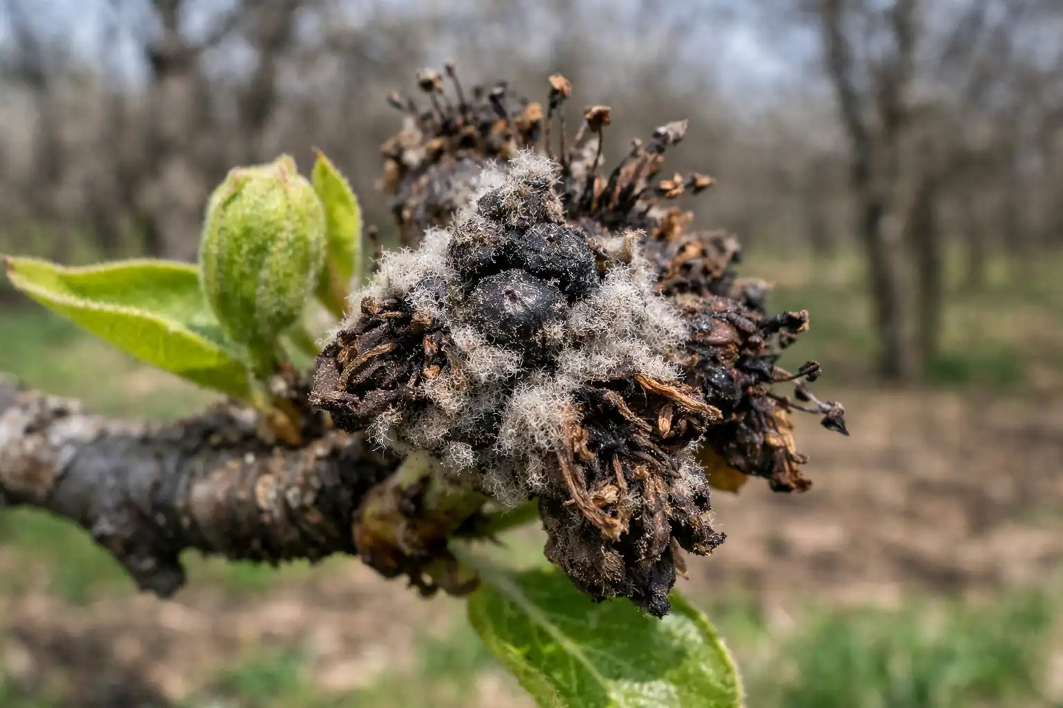 Ta bort all fjolårsfrukt som sitter kvar på grenarna, eftersom dessa är de viktigaste källorna till sporer. moniliac blight.