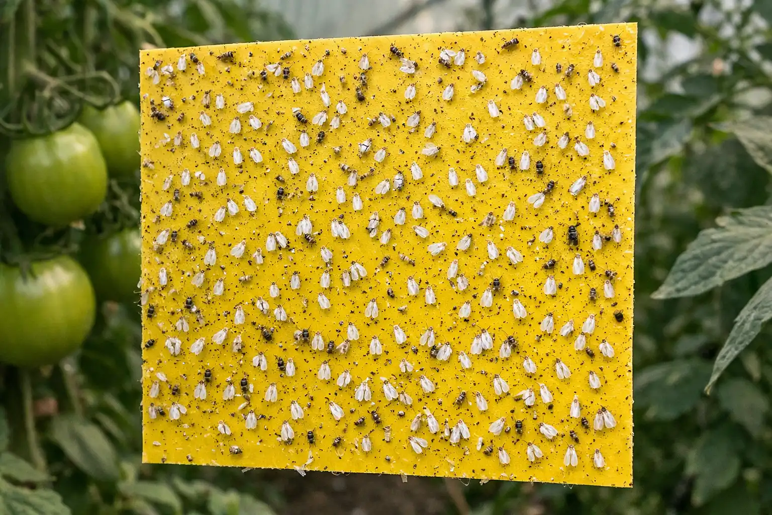 En hemlig nyans: Det är den gula färgen som lockar till sig vita flygare. Om det inte finns fällor att tillgå kan du använda gula plastbitar som du smörjer in med ricinolja eller vaselin.