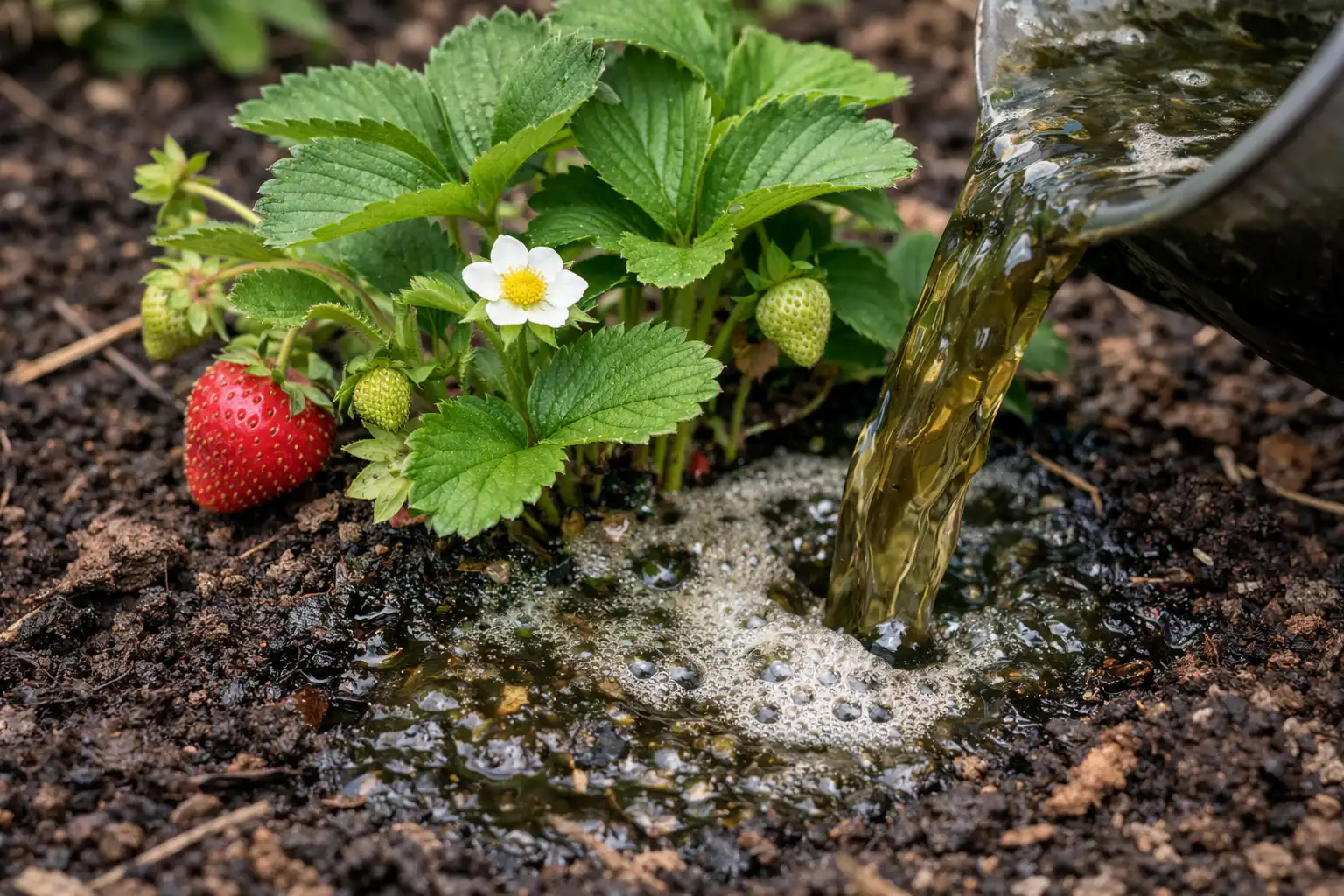 – Var noga med att vattna dina jordgubbar efter att du har gödslat dem.