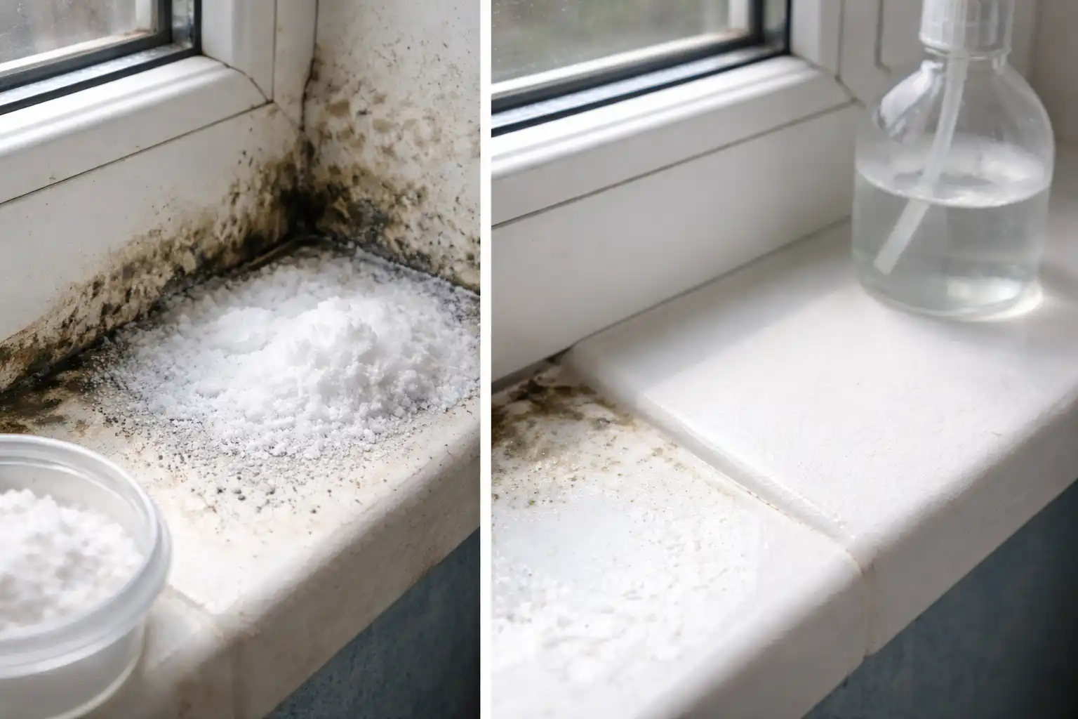 Många professionella formuleringar innehåller klor, som bara bleker ytan och lämnar svampens rötter inne i materialet. Bakpulver fungerar på ett annat sätt och skapar en miljö där mikroorganismer helt enkelt inte kan överleva och föröka sig.