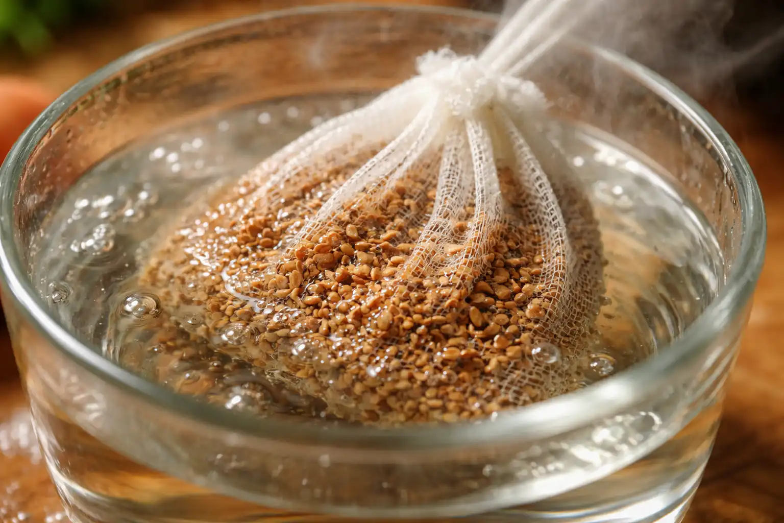 Blötlägg fröna i vattnet i högst tjugo minuter och rör om då och då.