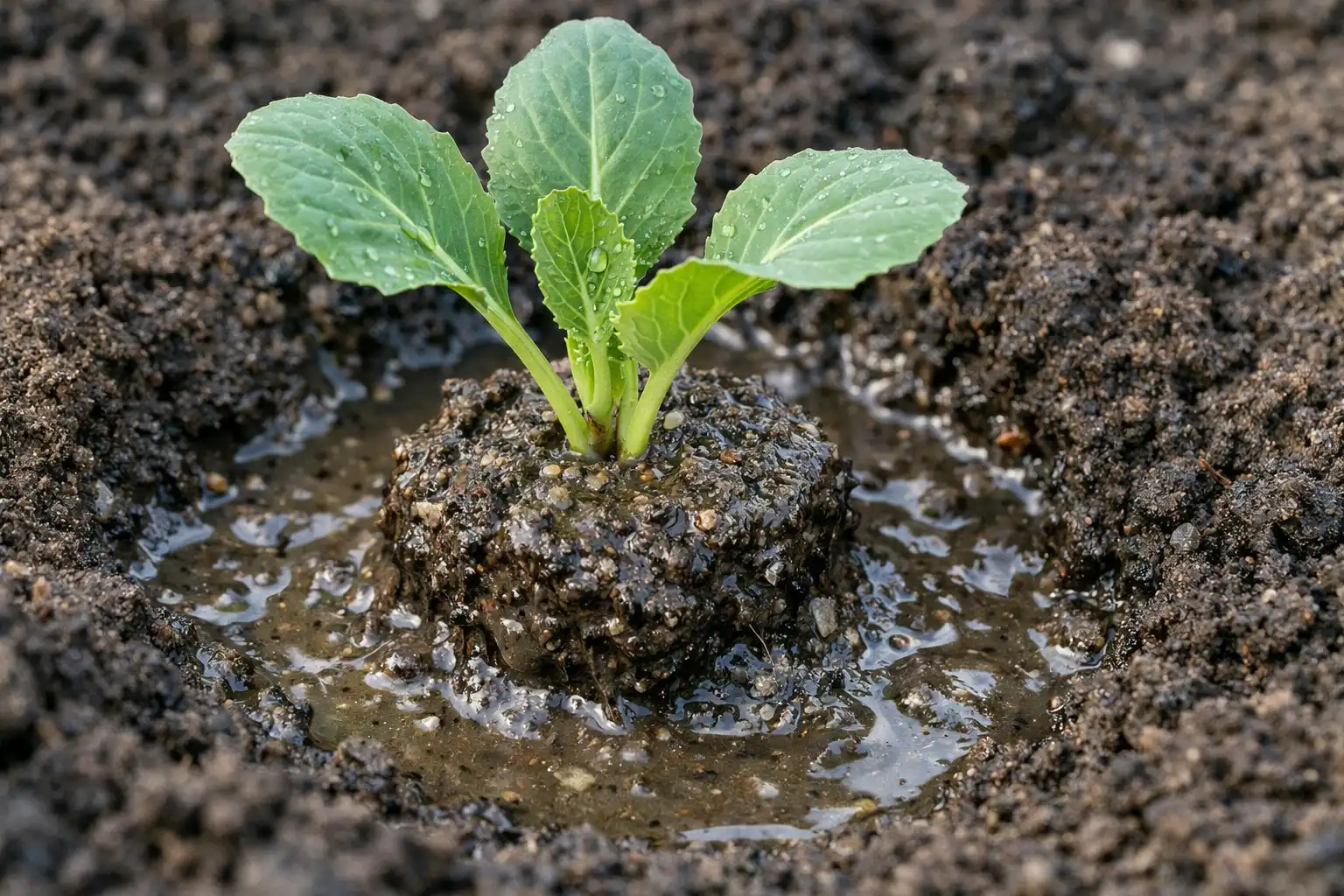 Kålplantor är extremt känsliga för rotsystemets tillstånd. Om man bara gräver upp plantan ur lådan skär man av upp till 70 procent av de sugande rötterna. För att undvika detta använder jag alltid metoden ”dirty mush”.