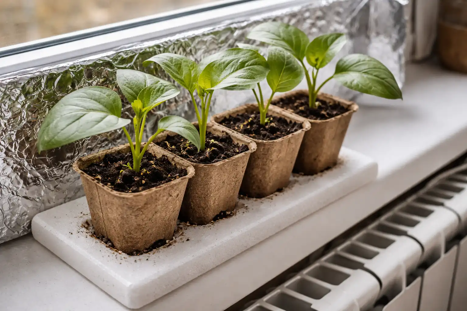 Placera en skärm av folie eller tjock kartong mellan elementet och plantorna.