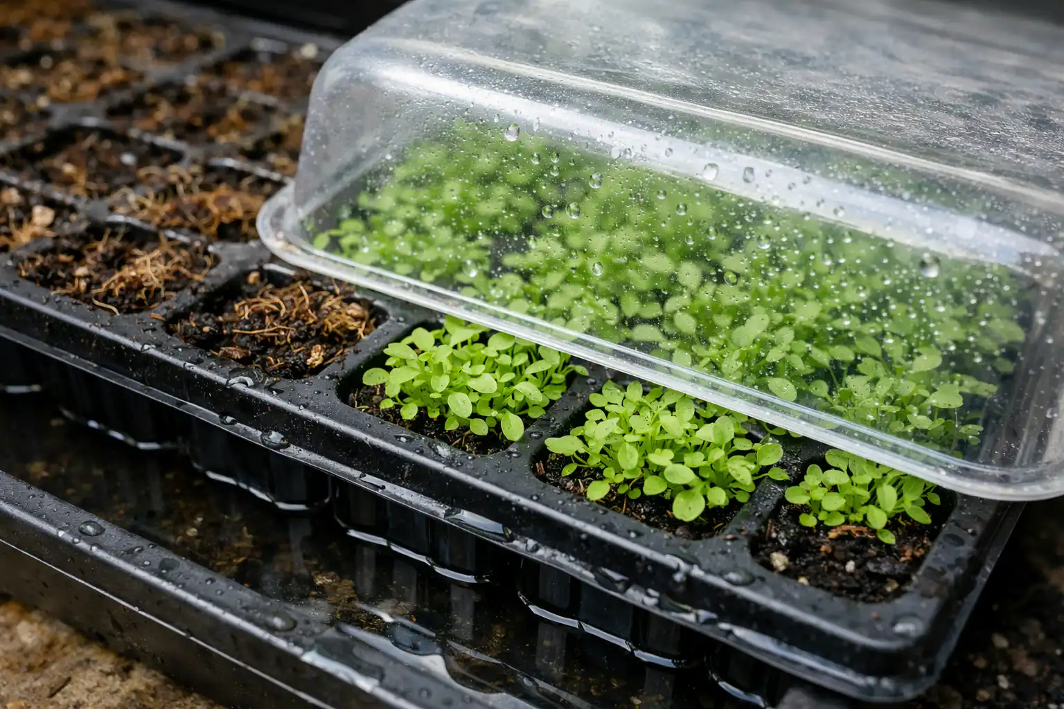 – Håll ett öga på jordens färg – den ska alltid vara mörkbrun. – Undvik drag när du vädrar rummet. – Använd en finfördelare endast för att öka luftfuktigheten i den omgivande luften. – Justera belysningen så att lamporna inte överhettar jordytan i kassetterna.