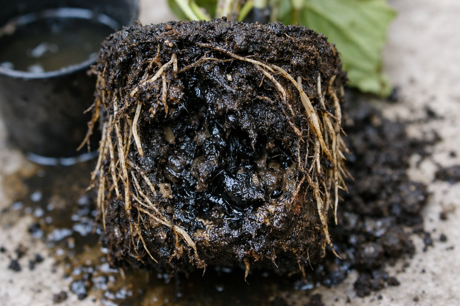 Endast om rötterna fortfarande är vita – du måste omedelbart transplantera växten i helt torr jord.