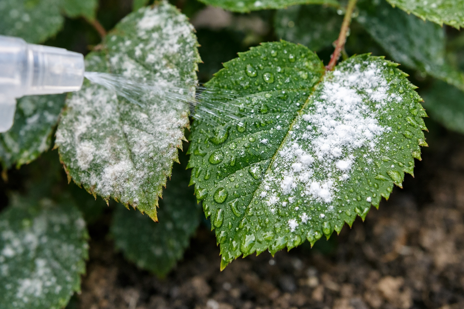 Sprutning bör göras tidigt på morgonen eller på kvällen efter solnedgången för att undvika solbränna på bladen.