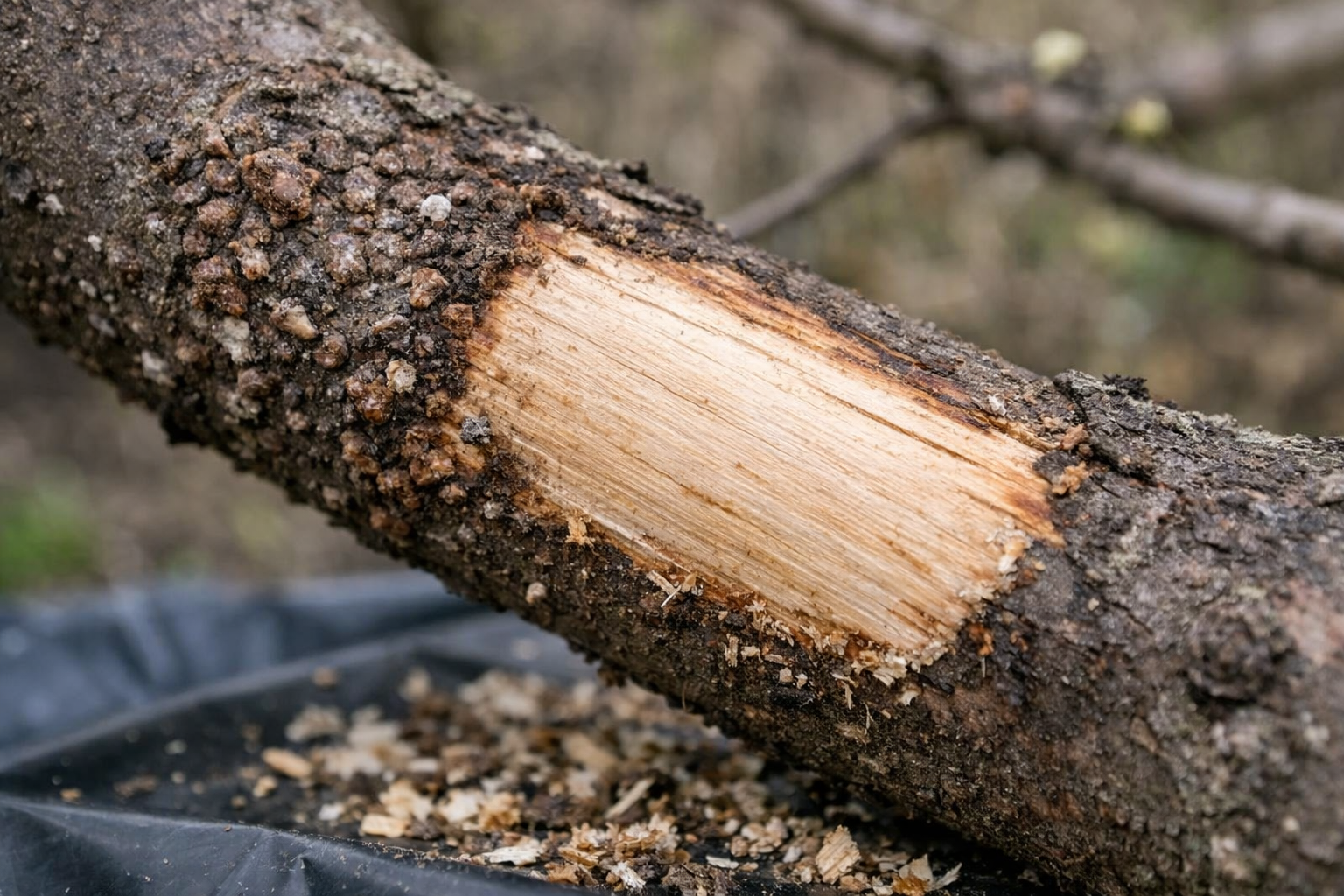 Det första steget är att beväpna dig med en metallborste eller spatel. Skrubba försiktigt bort de synliga kolonierna från stammarna innan saven börjar samlas. Var försiktig så att du inte skadar dem kambium – det levande lagret under barken.