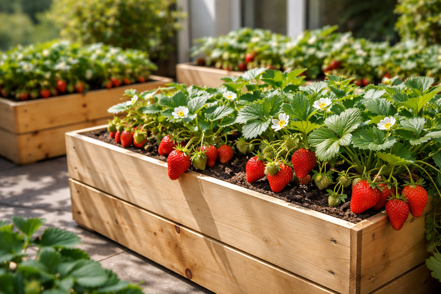 Jordgubbar i hinkar på fönsterbrädan eller terrassen blir verklighet