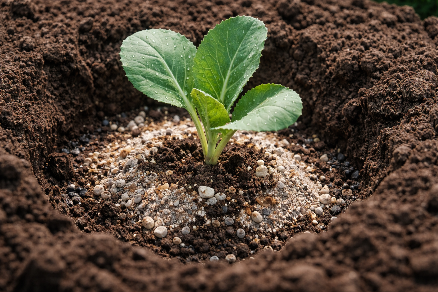 Lägga till en nypa superfosfat för att utveckla ett starkt rotsystem.