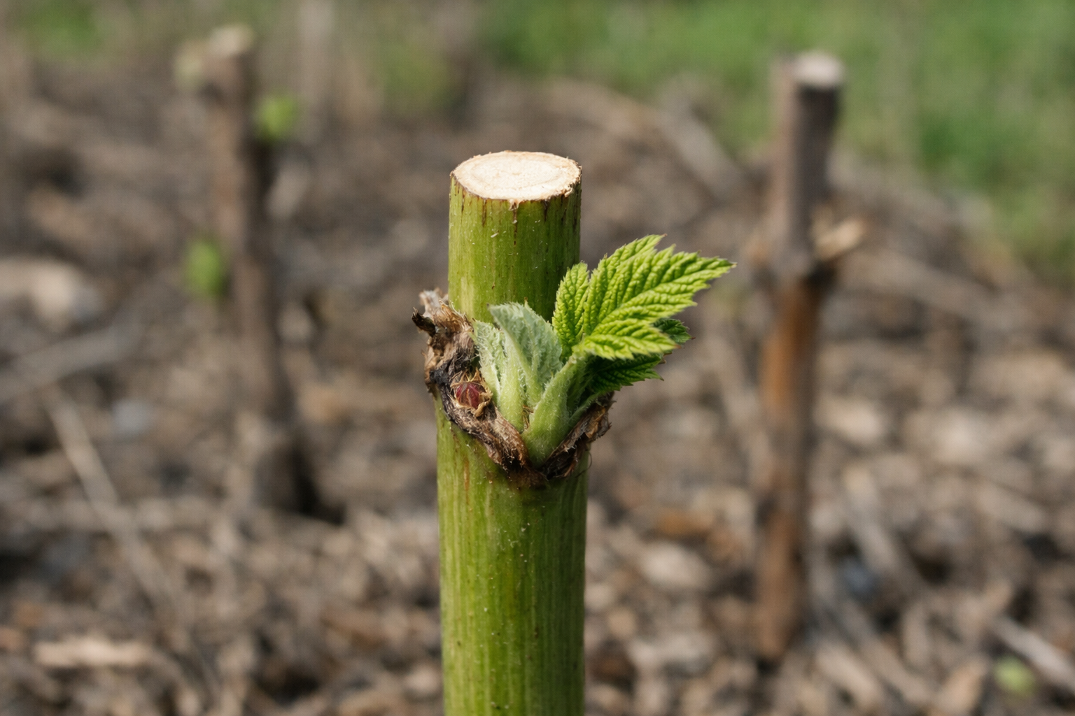 Många människor är rädda för att röra vid de starka gröna stjälkarna, men det är där det största tricket ligger. Om du lämnar en två meter lång piska kommer hallonen bara att producera små bär längst upp. Genom att kapa de översta 10-15 centimetrarna till en stark grön knoppVi tvingar växten att väcka vilande axlar längs hela stamens längd.