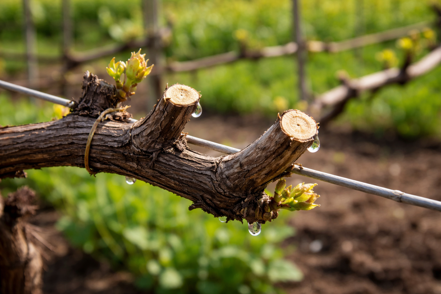 Noggrann skötsel av vinrankorna i början av säsongen är avgörande för hela trädgårdens hälsa.