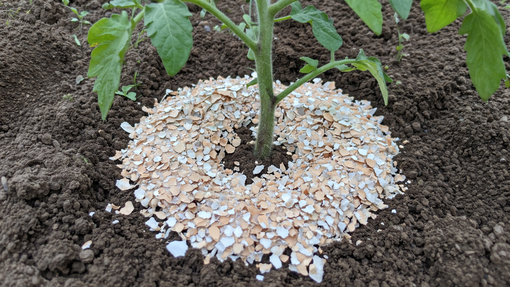 Användning av äggskal på våren hjälper till att förhindra topprotation. Denna fysiologiska sjukdom hos tomater uppstår just på grund av brist på kalcium, när frukten inte har tid att bilda en hälsosam hud och börjar ruttna längst ner.