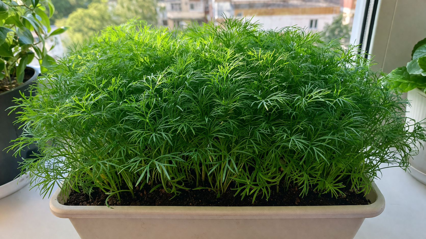 Så inte dill för tjockt. Om groddarna står i en ”vägg”, se till att du gör så här gallringlämna 2-3 centimeter mellan plantorna. Detta ger syre till rötterna och förhindrar mögel.