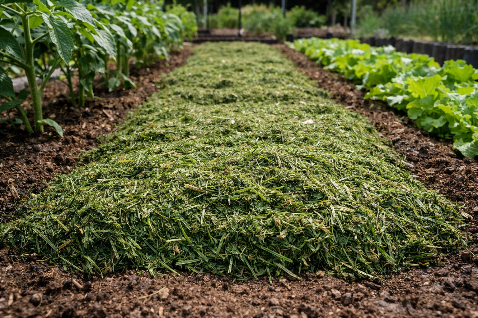 Nedbrytningsprocessen för gräs har en neutral eller lätt sur reaktion, vilket inte är skadligt för de flesta trädgårdsgrödor.