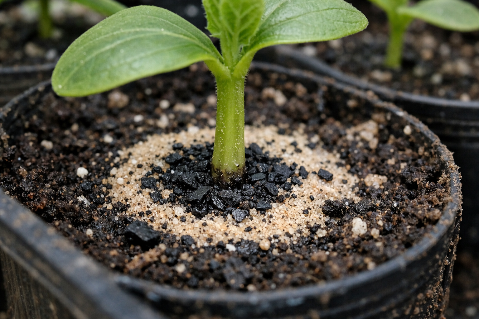 Gurkor är extremt nyckfulla grödor i stadiet av de två första bladen. Huvudfienden här är svart ben och en skarp temperaturkontrast. När rötterna befinner sig i kyla och toppen under en varm lampa eller i solen försämras saftrörelsen och växten ”stängs helt enkelt av”.