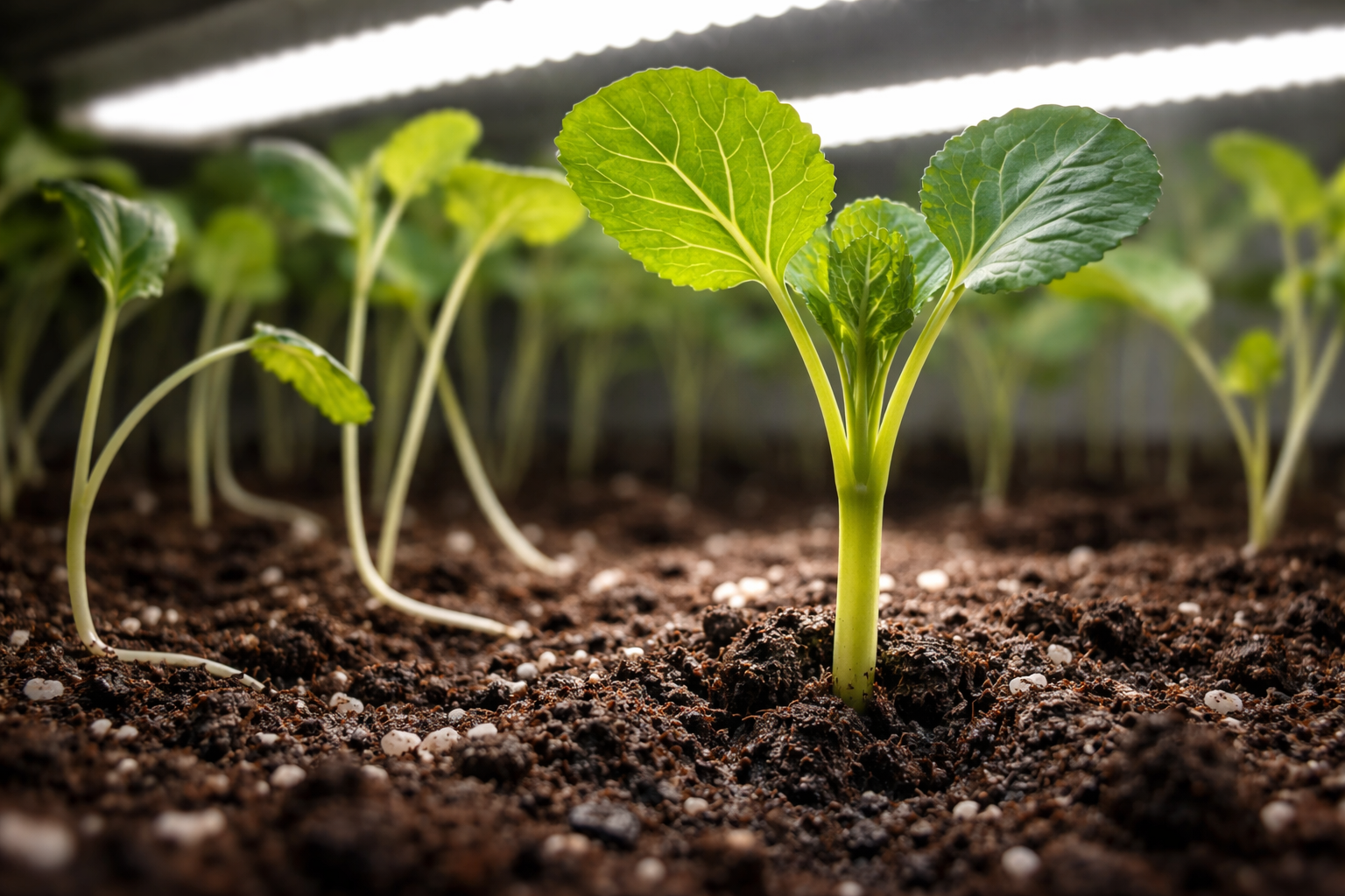 Rätt ljusreglering säkerställer bildandet av starka och friska kålväxter.