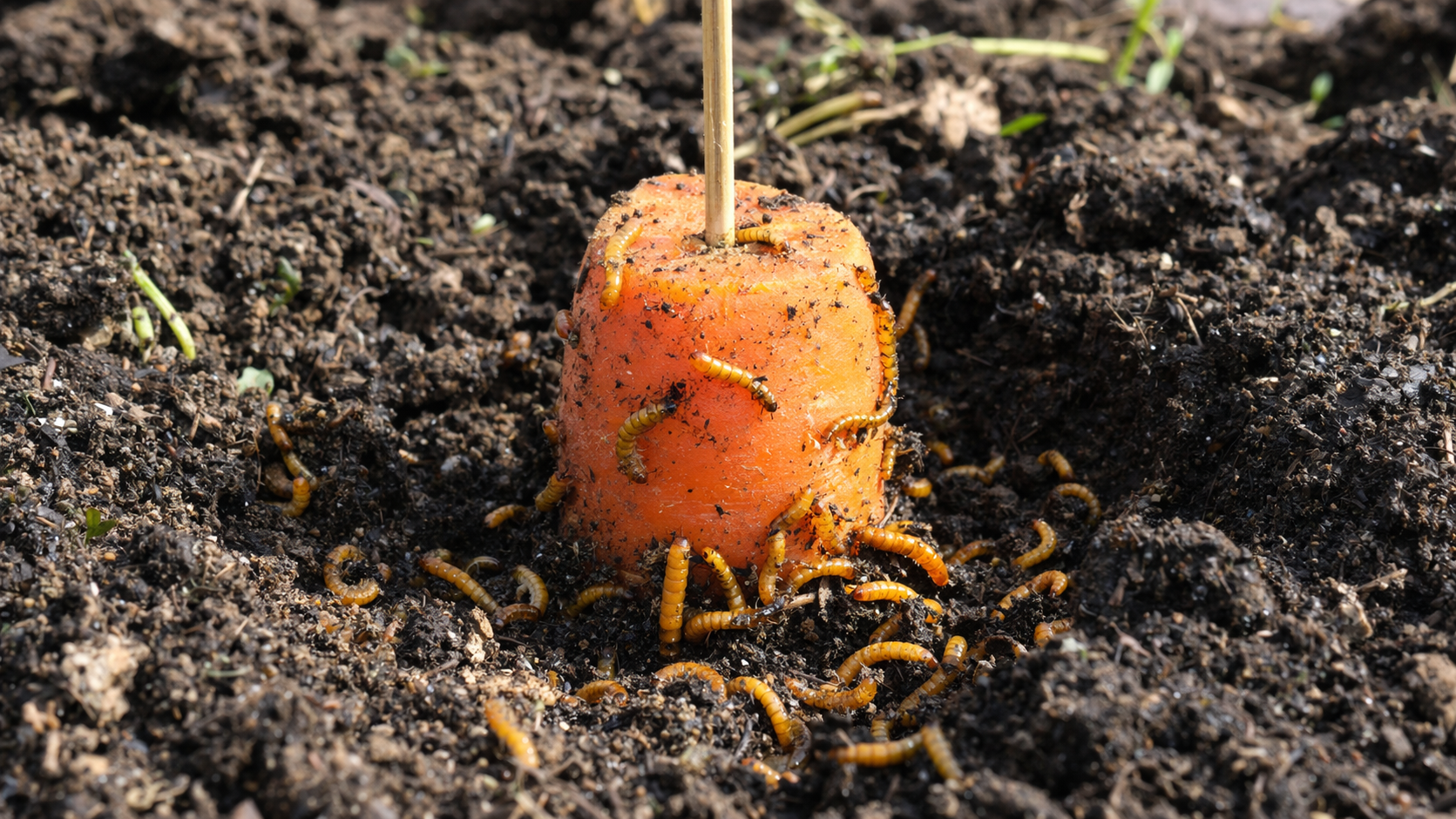 Att besegra trådmaskDu måste förstå trådmaskens vårvanor. Trådmaskens larver älskar fukt och sura miljöer. Så snart marken värms upp stiger de upp till de övre lagren på jakt efter mat. Vår uppgift är att fånga upp dem innan de når potatis eller ung sallad.