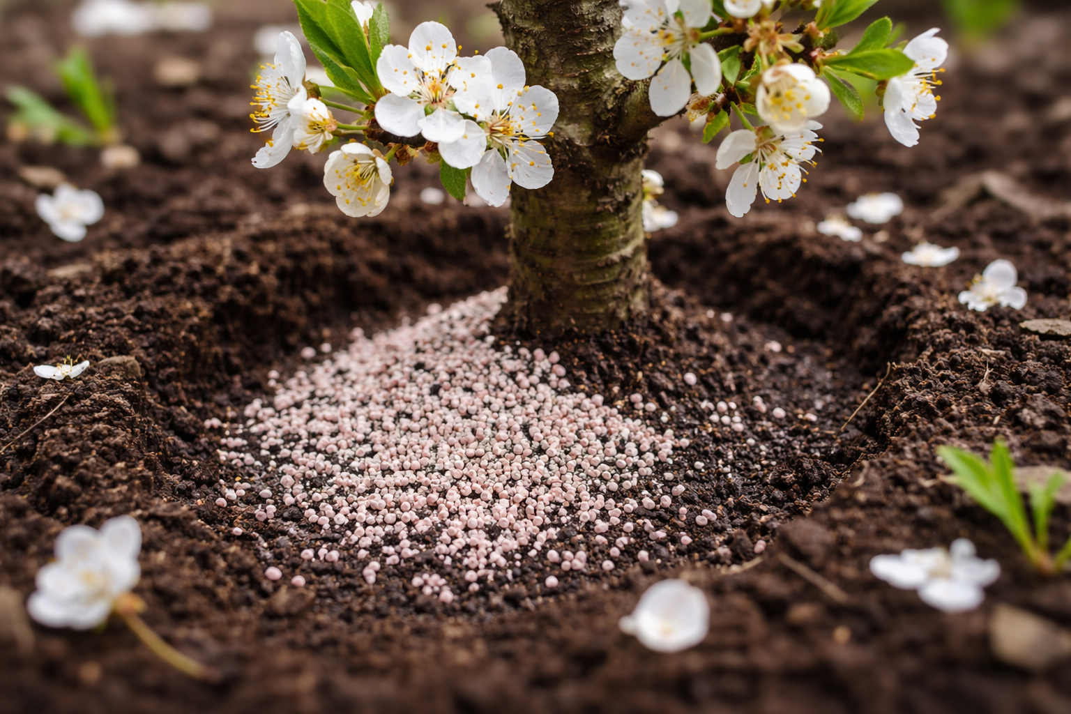 Sprid ut det valda gödselmedlet jämnt över kronans radie