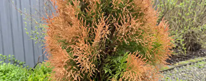 Din favorittuja efter snöfallet skrämmer dig med torra röda barr och verkar livlös, men skynda dig inte att ta upp beskärningssaxen och rycka upp trädet med rötterna.