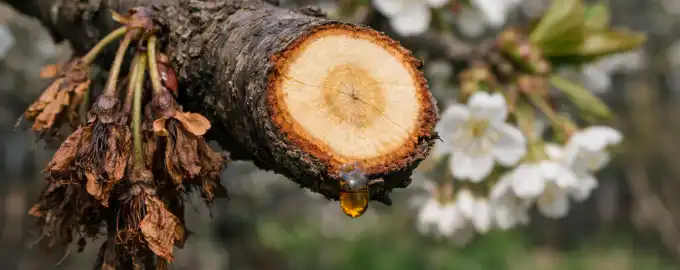 Om dina körsbärsträd plötsligt börjar se ut som om de blivit brända av eld på våren, och blommorna blir bruna och hänger livlösa, skyll inte för snabbt på.